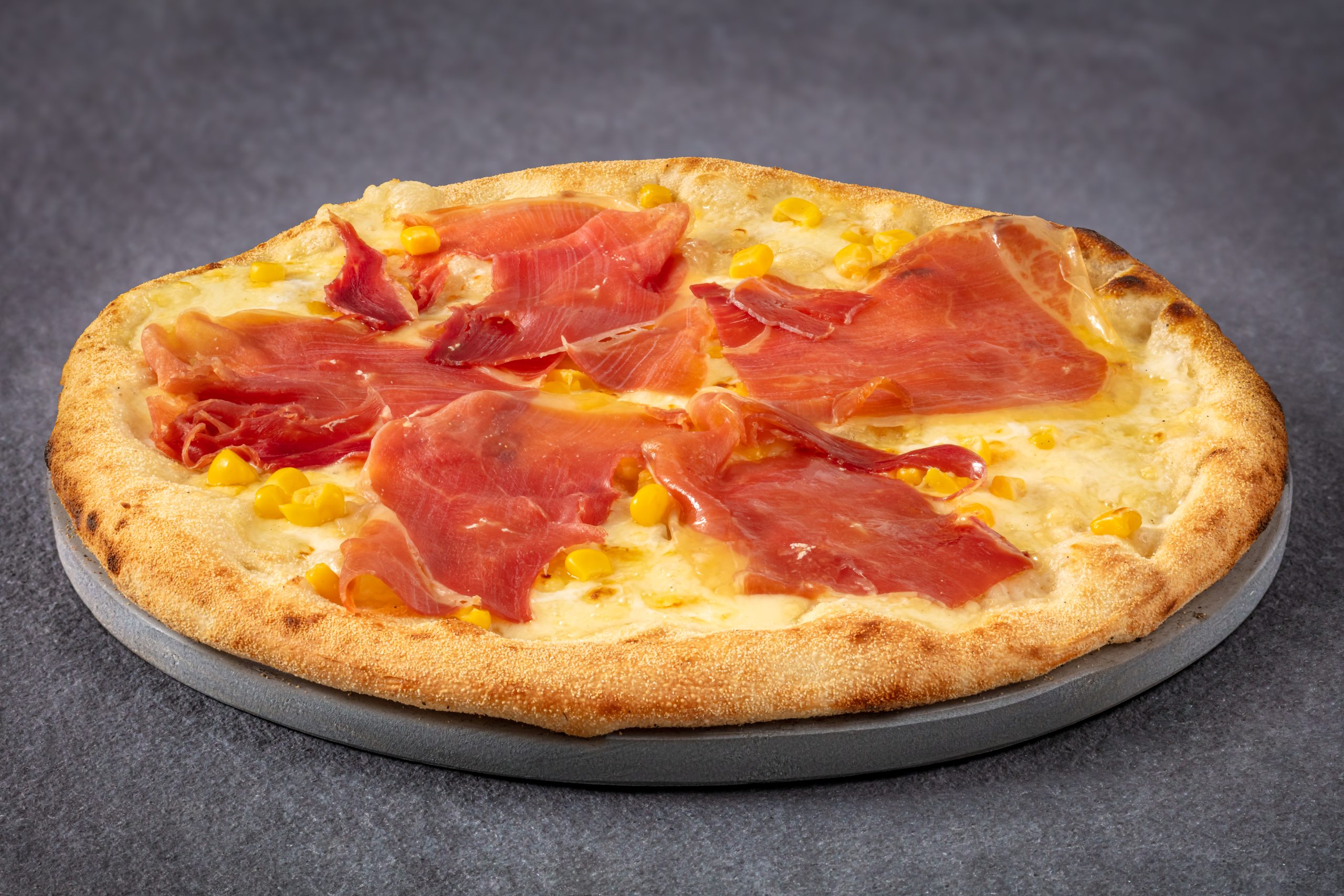 mozzarella fior di latte, smântână dulce, porumb, jamón serrano